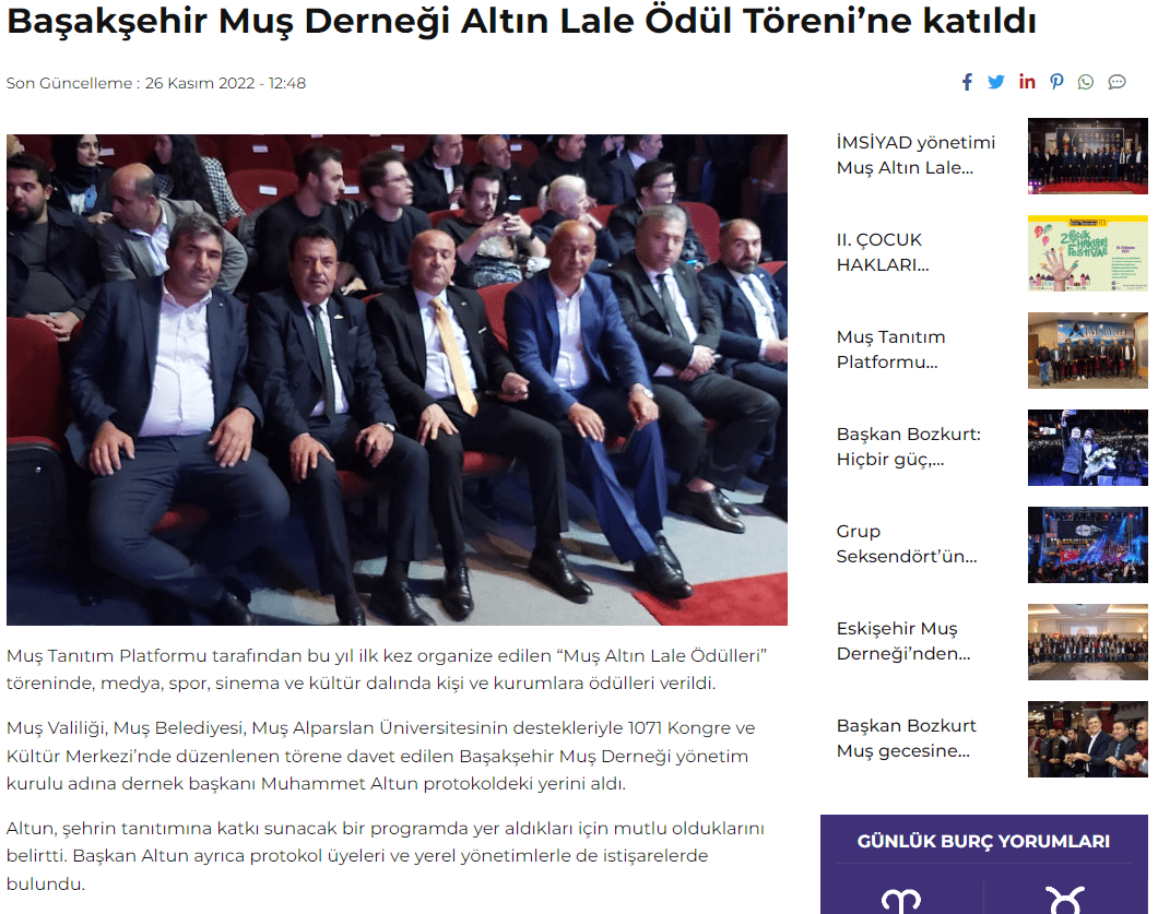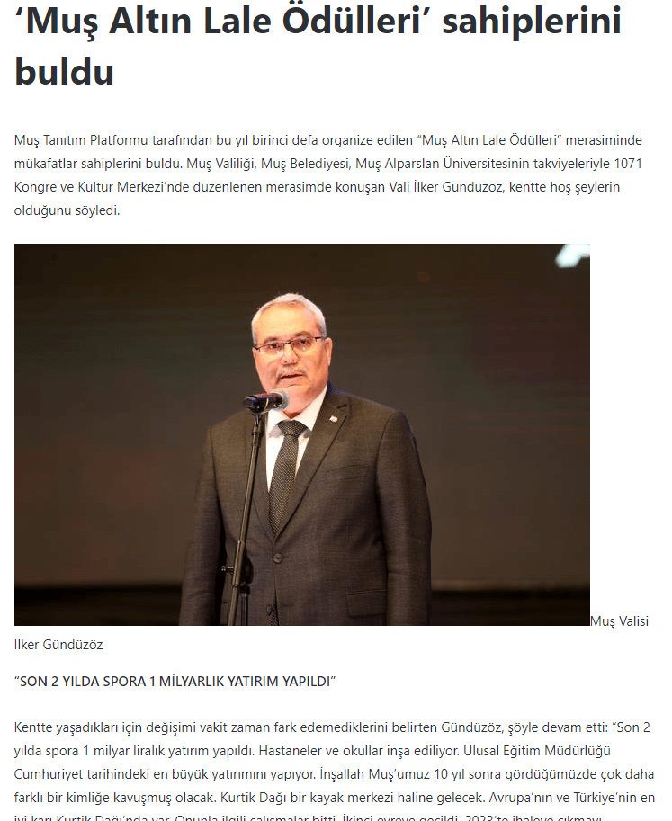Basında Muş Altın Lale Ödülleri..