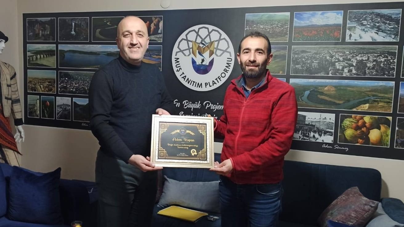 Ulusal fotoğraf yarışmalarında ödüller alan, yurt içi, yurt dışı sergileriyle Muş’umuzun tanıtımına katkıda bulunan, fotoğraf sanatçımız ve yönetim kurulu üyemiz; Adem KAPAN‘a teşekkür belgemizi taktim ettik. Facebook Twitter WhatsApp Pinterest LinkedIn Gmail Telegram SharePost navigationPreviousPrevious post:Muş TSO Başkanı Erdal KOÇ’a teşekkür.NextNext post:Muş Belediye Başkanı Feyat Asya ofisimizi ziyaret etti.Altın Lale Ödülleri sahiplerini bulduKasım 29, 2022Altın Lale Ödül TöreniKasım 23, 2022Ufuk Bayrak’a teşekür.Şubat 2, 2021Fotoğraf sanatçımız Yahya Sezgin’e teşekür.Ocak 30, 2021TKDK Muş İl Koordinatörü Mehmet Emin Turan’a teşekkür.Ocak 28, 2021Fotoğraf sanatçılarımızdan Volkan Taşdemir’e teşekkür.Ocak 25, 2021